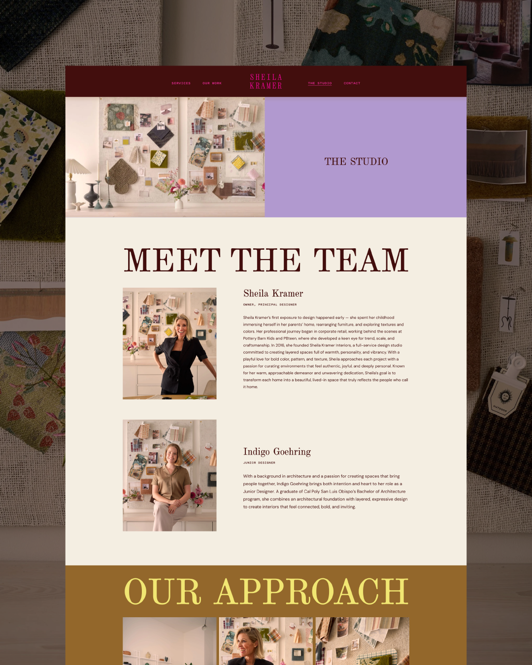 Sheila Kramer Interiors is a full-service design studio serving the Bay Area and beyond committed to creating layered spaces full of warmth, personality, and vibrancy. With a playful love for bold color, pattern, and texture, Sheila approaches each project with a passion for curating environments that feel authentic, joyful, and deeply personal. We worked together to create a brand identity and online presence that felt uniquely her.